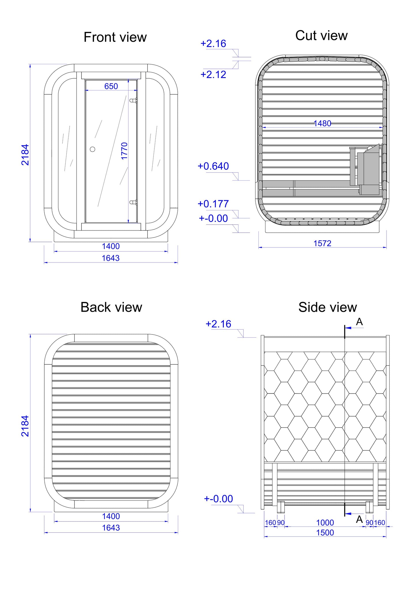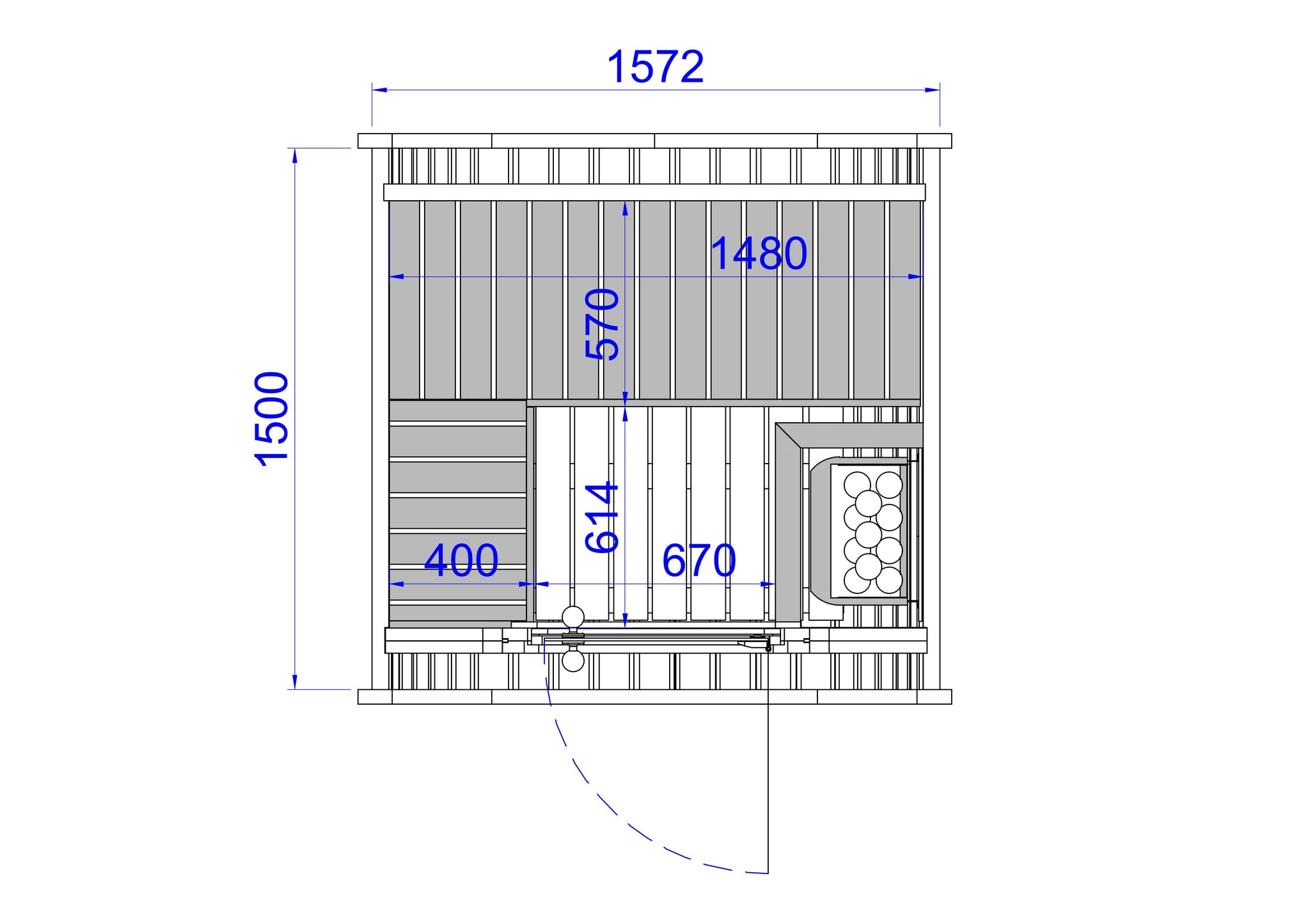 Utvändig storlek Bastu Kub Liten: L: 150 cm x B: 157 cm H: 218 cm