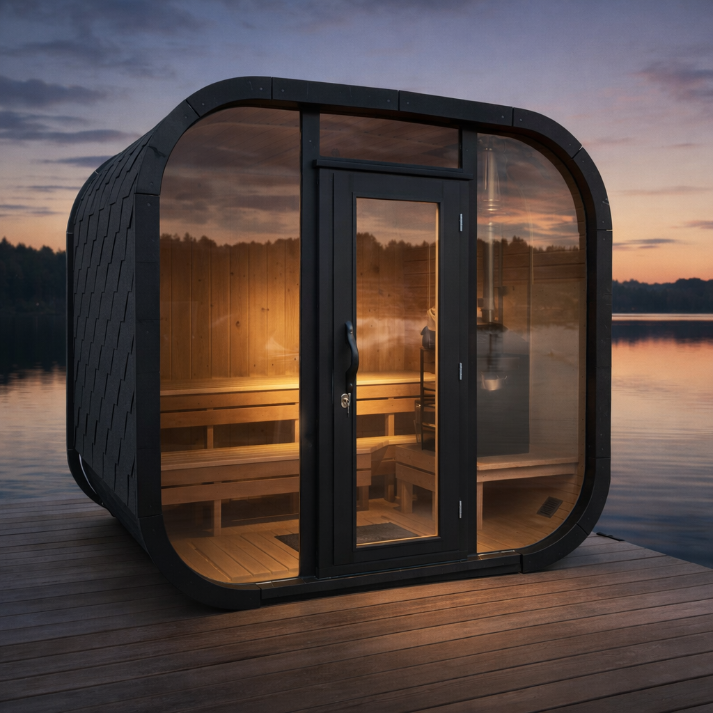Utvändig storlek Bastu Kub Medium: L: 241 cm x B: 204 cm H: 245 cm