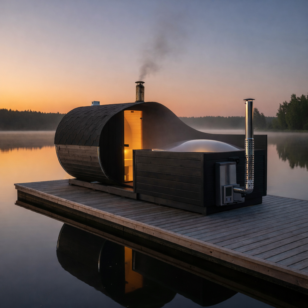 Bastu Premium kombinerar effektfullt en vedeldad bastu och vedeldad badtunna i en enhet. Enheten kommer komplett monterad (skorstenar och stenar till bastuaggregat levereras i paket)