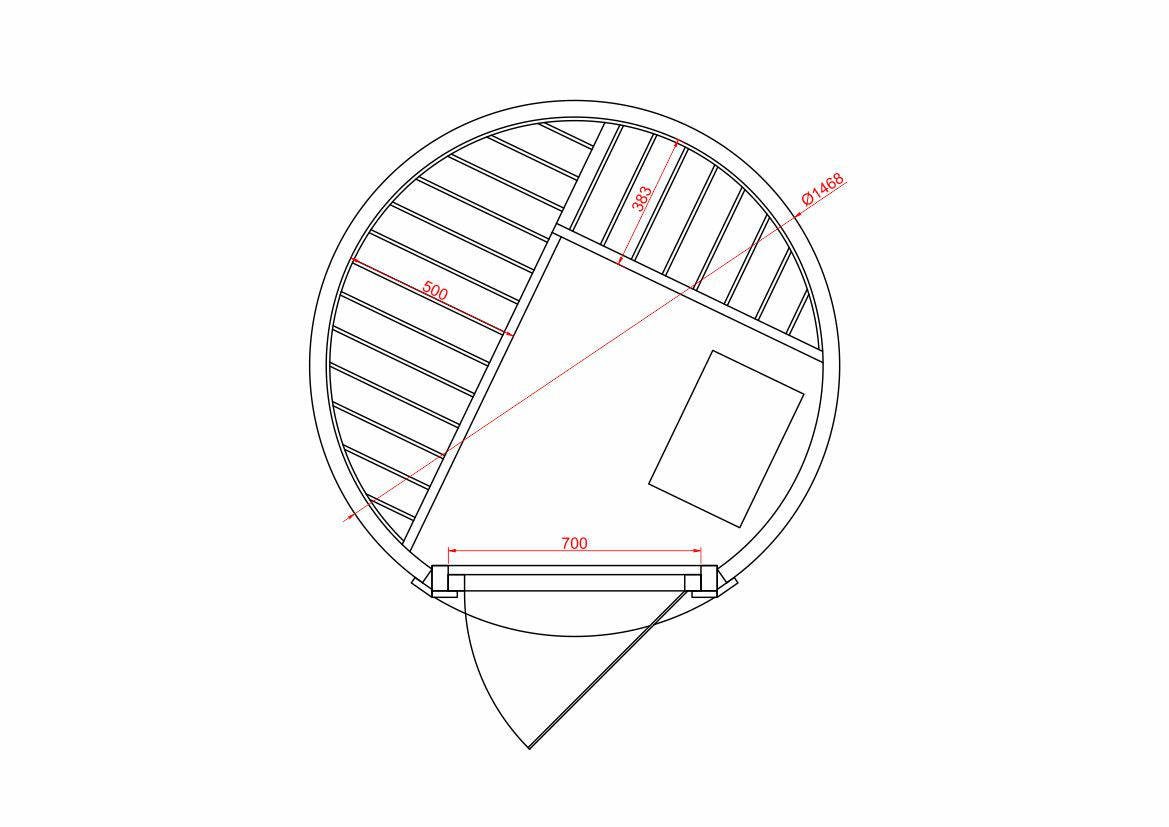 Storlek bastu terass: Diameter: 148 cm x Höjd: 220 cm
