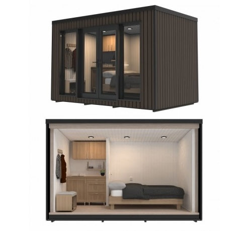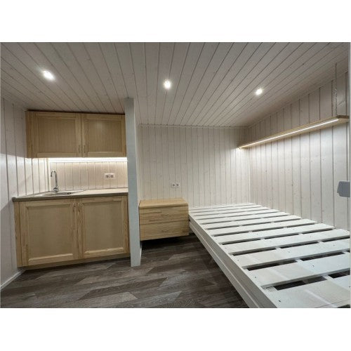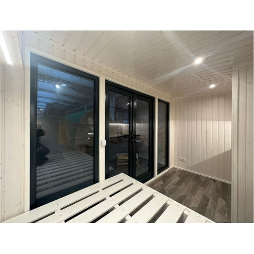 Friggebod 9 m² är en nyckelfärdig friggebod och kommer färdigmonterad. Förbered en grund, ställ den på plats, koppla in inkommande ström och den är redo att inredas enligt dina behov. Perfekt som gästhus, tonårsrum eller kontor. Friggeboden har rejäla två-glas fönster (4-16-4) och en rejäl dubbeldörr med två-glas fönster (4-16-4) Eldragning är klar, med utvändig ledlist (ca 4 m) invändiga lampor (4 st) uttag (7 st) och strömbrytare inkopplat. Takränna är inkluderad och monteras av kund.